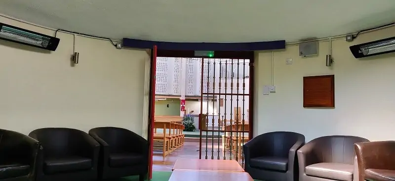 “The area we needed to warm up is a round room off the main church with a dome light in the centre. There is only one narrow stained glass window, but only a small section of wall is internal and the rest external. The room is not connected to the main Church heat system. The room is frequently used for small Church groups to gather and hold discussions throughout the year, mostly during the evening. They made do with a small electric fan heater, but as the number of meetings increased it was necessary to heat the room properly. Adding the room to the main central heating was not an option as heating the whole church for one small area is not viable, and it would take a long time to heat up. So the criteria was for a quick-heating yet quiet solution, and we also needed something easy to operate for anyone coming in to get it running.