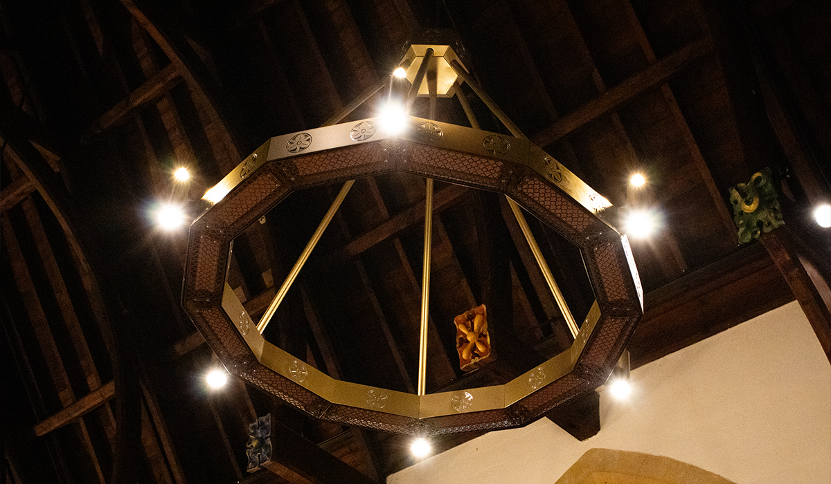 The elegant chandelier-style Halos installed within St Michael’s have been finished in bronze, decorated with the beautiful Trinity Clover design and ornate grill. Integrated, dimmable LED lights provide the dual function of energy-efficient lighting alongside the infrared heating.