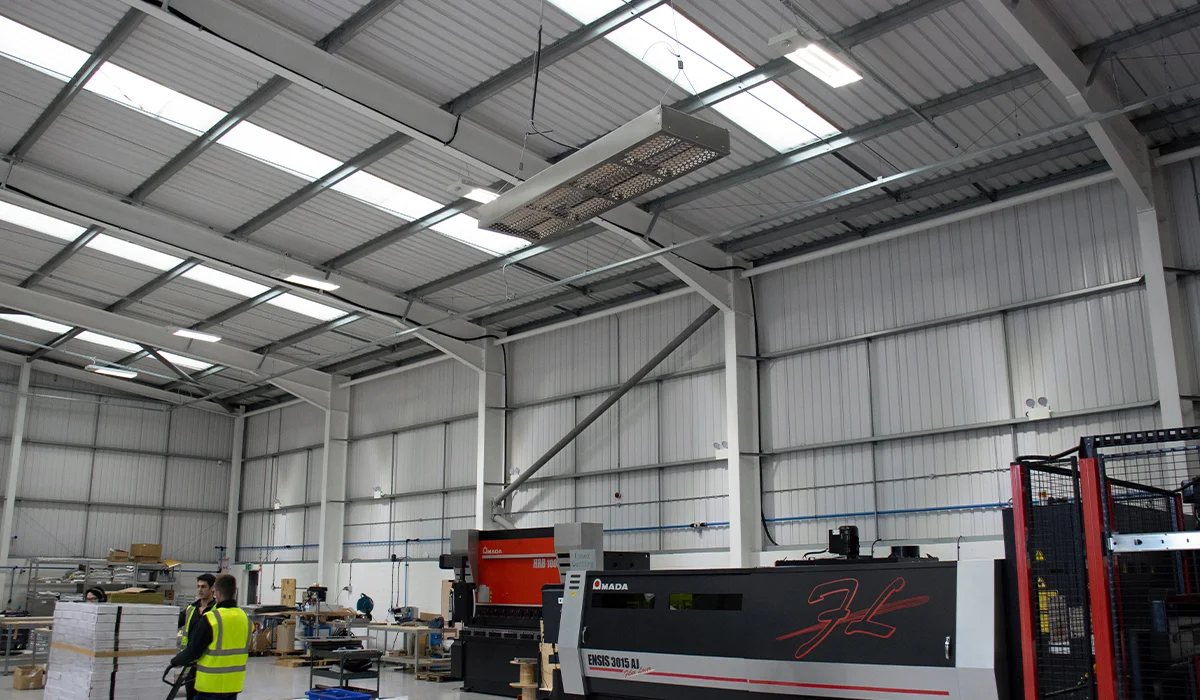 When used in zones within large spaces and properly controlled, significant energy savings can be achieved from the Power industrial workshop heater compared to traditional convection based space heating system as the heater can be used to directly warm people within an open area, for example packing bays, workstations. Alternatively, the heaters can be used to heat an entire room within an enclosed space.